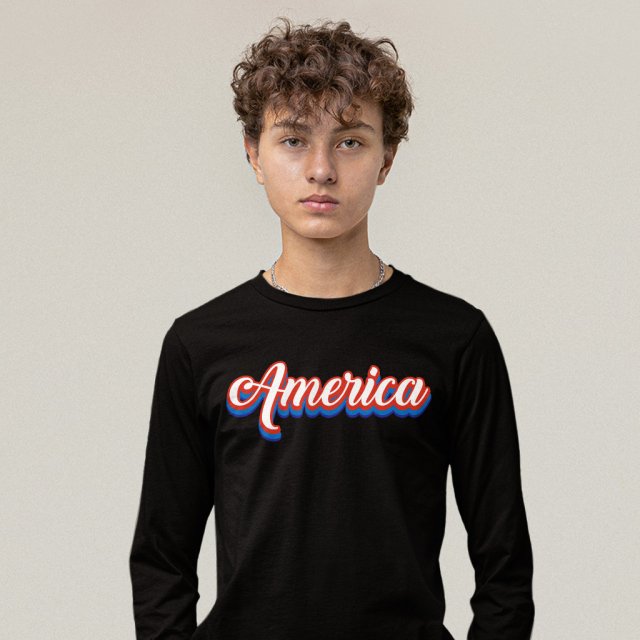 America Retro Graphic Long Sleeve T-Shirt – Retro USA T-Shirt – Groovy America Basic Tee