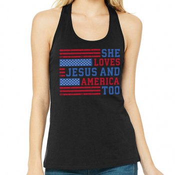 She Loves Jesus And America Too Racerback Tank – America Retro Tank Top – Christian Tank
