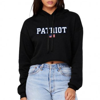 Patriot America Flag Women’s Cropped Hoodie – USA Patriot Hooded Sweatshirt – 4th Of July Super Crop Top Hoodies