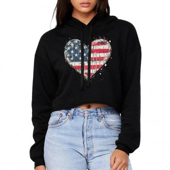 USA Flag Heart Women’s Cropped Hoodie – Fourth Of July Gift Hooded Sweatshirt – Stars and Stripes Super Crop Top Hoodies