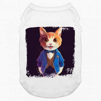 Cute Cat Dog Tank – Animal Print Dog T-Shirt – Cat in Suit Dog Clothing
