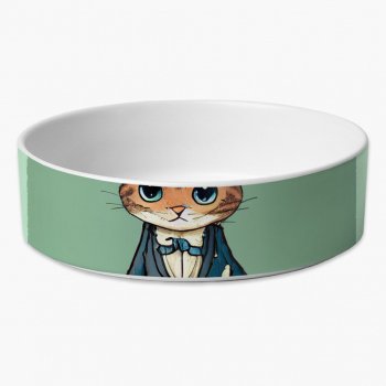 Cute Cat Pet Bowl – Animal Print Dog Bowl – Cat in Suit Pet Food Bowl