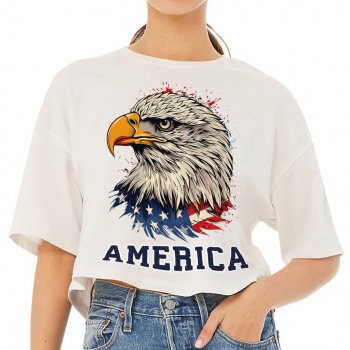 American Eagle Cropped T-Shirt – Bald Eagle Graphic Trendy Tee – Memorial Day Women’s Basic T-Shirt