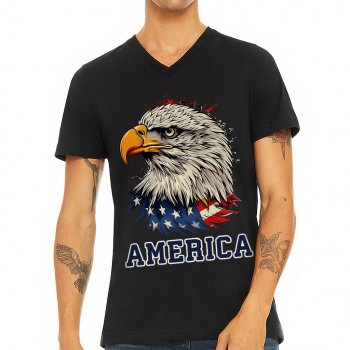 American Eagle V-Neck T-Shirt – Bald Eagle Graphic Basic T-Shirt – Memorial Day Tee
