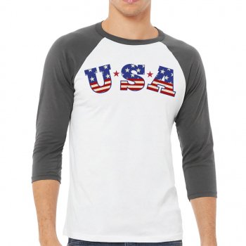 USA Baseball T-Shirt – American Flag 3/4 Sleeve – Vintage Raglan Jersey Shirt