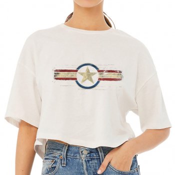 USAF Roundel Cropped T-Shirt – United States Air Force Trendy Tee – Military Women’s Basic T-Shirt