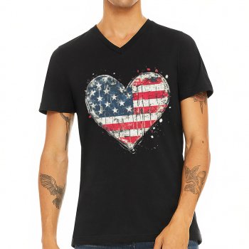 USA Flag Heart V-Neck T-Shirt – Fourth Of July Gift Basic T-Shirt – Stars and Stripes Tee