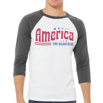 America The Beautiful Baseball T-Shirt – Retro America 3/4 Sleeve – Land Of the Free Raglan Jersey Shirt