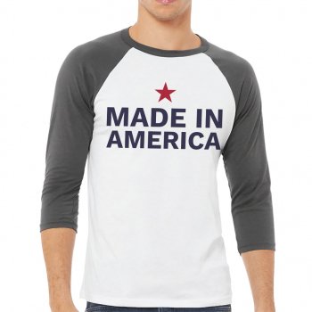 Made In America Baseball T-Shirt – USA Freedom 3/4 Sleeve – Proud American Raglan Jersey Shirt