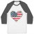 USA Flag Heart Baseball T-Shirt is proudly made with 7x less water than average manufacturers, in recycle-friendly facilities that also guarantee zero sweatshop conditions. Stars and Stripes 3/4 Sleeve is designed and printed in California.